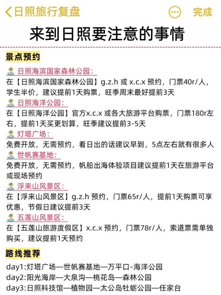 日照有许多景点齐是需要提前预约的 ,像海洋公园,日照科技馆,博物馆这些齐需要提前查好预约的信息ℹ️,本日去的话很有可能进不去,游荡行程,还有日照的住宿也要提前预定,旺季时候价钱贵不说,还容易订不到房🏠