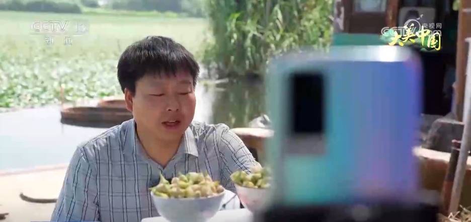一大早,泰州市姜堰区溱潼镇的农户们就划着菱桶干预水池,开动采摘菱角。这里的菱角前后两角舒展,傍边两角工致捏住,被称作四角菱,壳薄易剥,肉质粉糯,进口回甘。本年一开塘,姜堰区各村的干部就指导村民们在塘口进行直播销售。