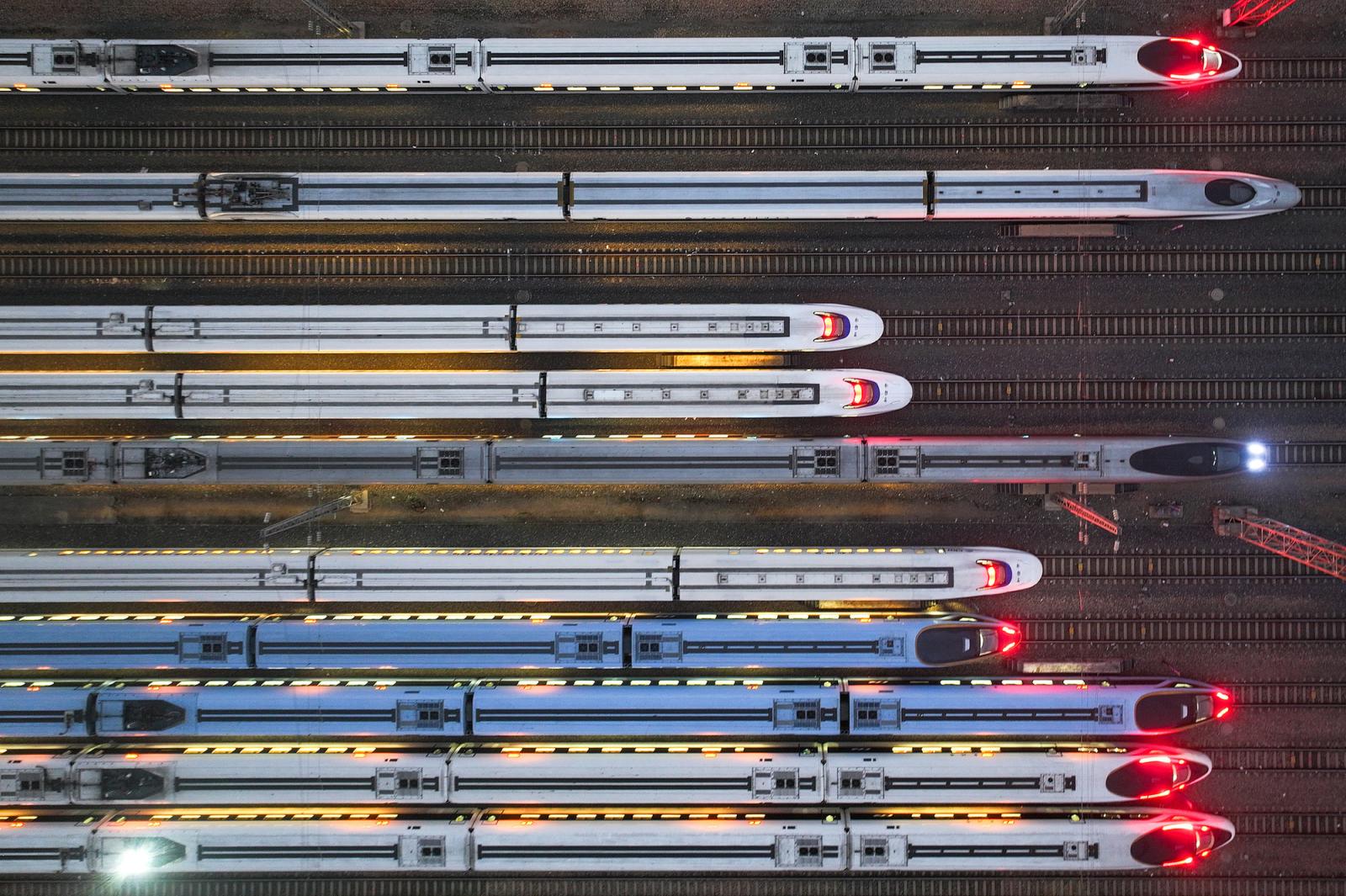 南京,动车组列车整都停放在南京动车段南京南动车期骗所存车线上。