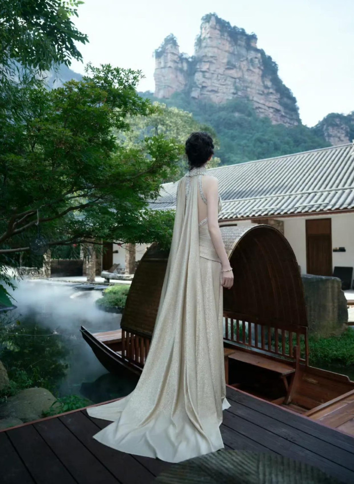 圆善的直角肩更是羡煞旁东谈主,静坐在山水之间的唐嫣好意思得像一幅画
