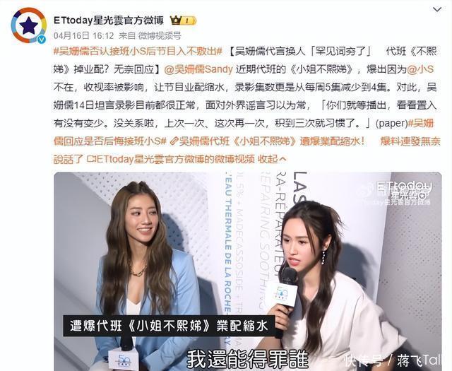 吴姗儒代班后,还一度传出因报酬关系,让《密斯不熙娣》制作单元入不敷出,一周录5集被动砍成4集的讯息。对此,吴姗儒称照旧快风气各式黑料:“莫得啊!一直都是4或5(集)。”