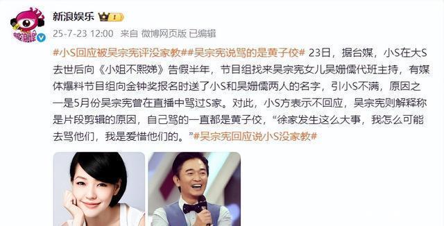 而吴宗宪关于儿子因为代班堕入争议也怒上心头,公开怼过。因小S请了长假,吴姗儒平直代班了泰半年。 但竟然让吴宗宪开撕的,照旧和金钟奖关连。在7月份时,台媒就爆出节目组向金钟奖报名时送了小S和吴姗儒两东说念主的名字,引小S不悦,原因之一是5月份吴宗宪曾在直播中骂过S家世博体育(中国)官方网站,其时骂的照旧没家教。
