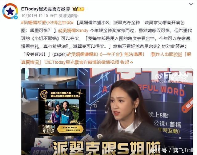 不外吴宗宪的儿子吴姗儒代班近8个月却弗成提名还真和小S无关,因为她天然代班了近8个月,但集数上数未达评审门槛才未能入围奖项。 倒是吴宗宪的儿子大方地示意,不在意落第,称“莫得任何东说念主或者替代小S”,并祝颂小S与派翠克得奖,展现出高情商与风姿。
