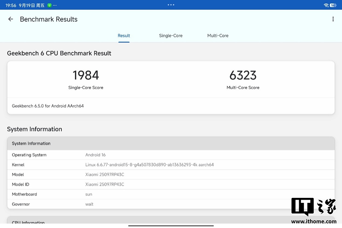这里咱们通过 GeekBench 6 跑个分,给人人一个约略的参考。实测小米平板 8 的 CPU 单核收成为 1984 分,多核收成为 6323 分。