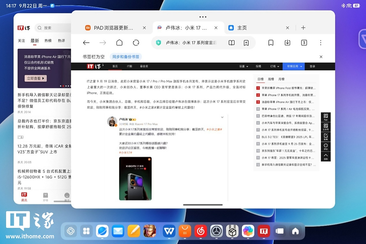 在IT之家 2022 年的小米平板 5 Pro 12.4 评测中就曾提到,那时的 MIUI for Pad 系统为哄骗小窗带来了诸多丰富和实用玩法,不外那时小窗功能的多级改动适配还有很大升迁空间,动画上的掉帧和触控延伸(窗口画面加载滞后、不同步)等小问题不少。