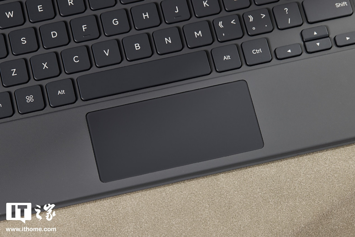键盘布局照旧,触控板区域作念了加长打算,磁吸键盘保护壳的分量接近 600g,搭配手写笔和平板全套分量约 1.1kg。