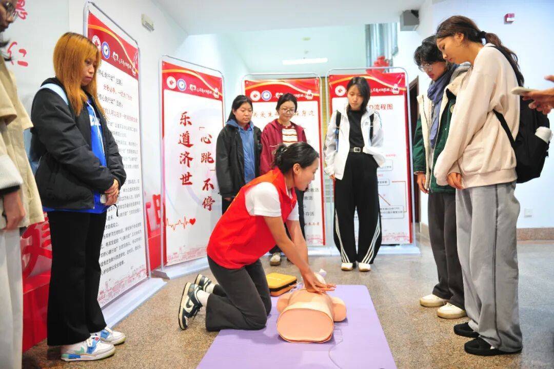 为强化师生济急防守领悟,“军桥心跳行径”志愿队在宣讲会启动前,于会场外特设急救培训智力,聚焦心肺复苏术与AED这两项要道急救妙技,通过“表面讲授+现场演示”的形势,让在场师生躬行参与操作,切实扶植了群众应酬突发气象的自救互救才略。