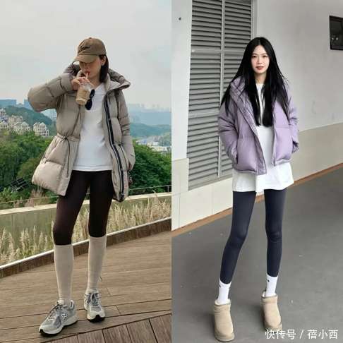 若是你很怕冷,一定得用棉服搭配鲨鱼裤,上半身穿一件富厚御寒的棉服,下半身搭配一条修身的鲨鱼裤,不错造成松紧对比,视觉上更显腿细,御寒成果也不错兼顾。
