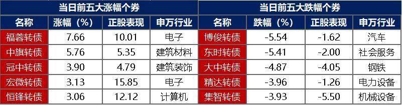 【转债阛阓主要指数集体跟跌】 12月2日,转债阛阓奴婢权力阛阓有所下行,当日中证转债、上证转债、深证转债划分收跌0.52%、0.54%、0.46%。当日,转债阛阓成交额468.56亿元,较前一往异日缩量84.73亿元。转债阛阓大多着落,401支转债中,54支收涨,344支着落,13复旧平。当日高潮个券中,福蓉转债涨超7%,中旗转债涨超5%;着落个券中,博俊转债、东时转债跌逾5%。