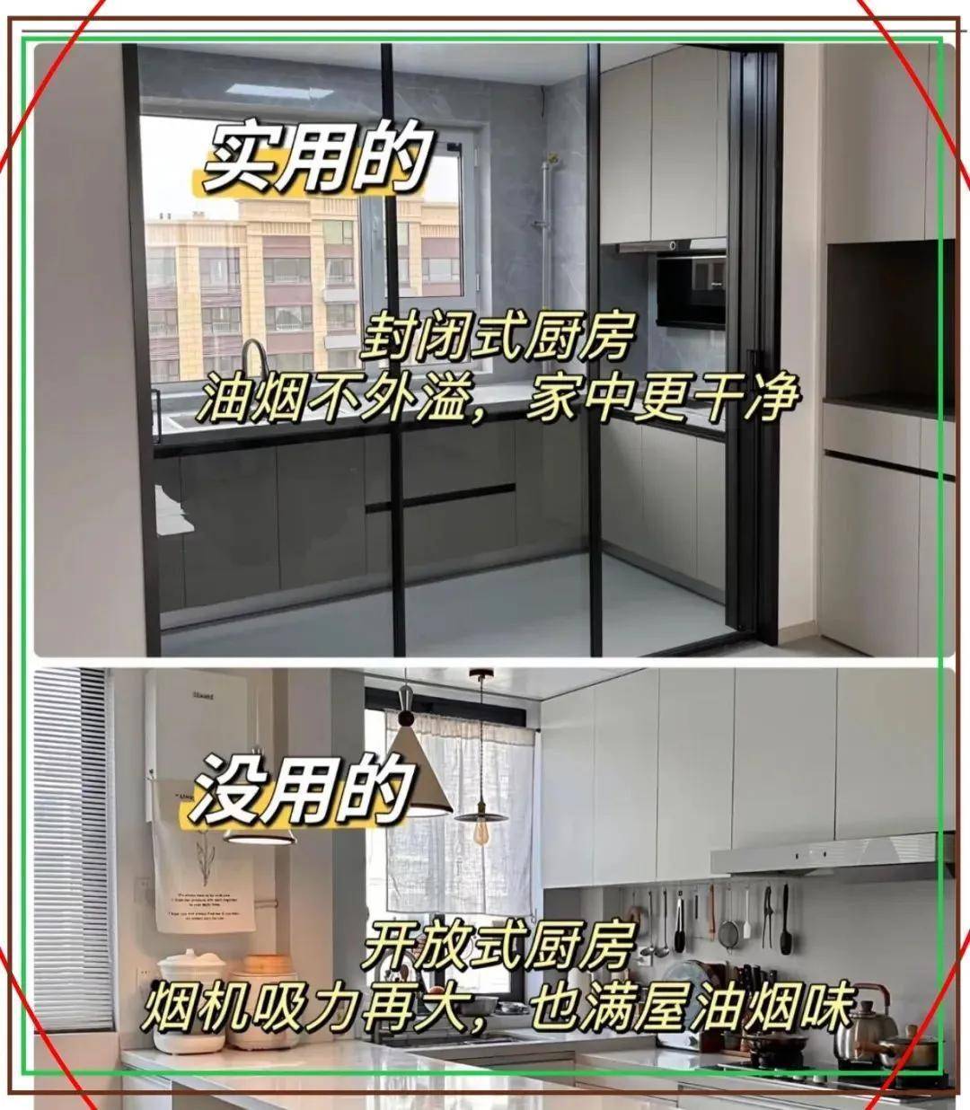 ❌ 鸡肋:绽开式厨房便是恶梦!哪怕烟机开到最大,炒个菜全屋皆是味,穿戴头发全是油!