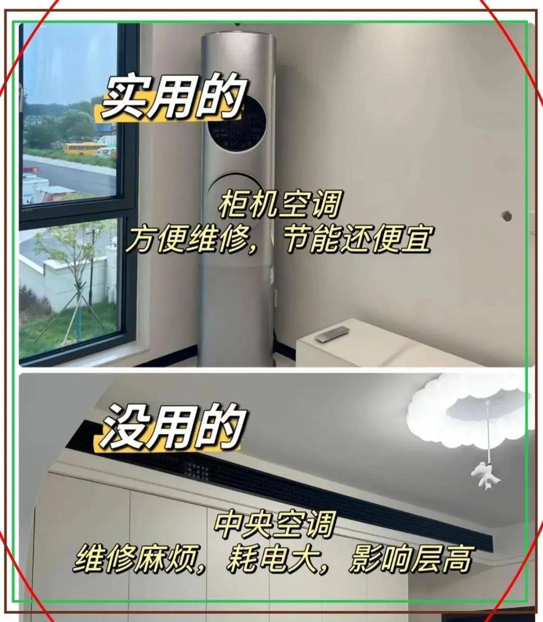 ✔️ 实用:柜机空调yyds!坏了师父上门就修,耗电比中央空调少,还不影响层高。