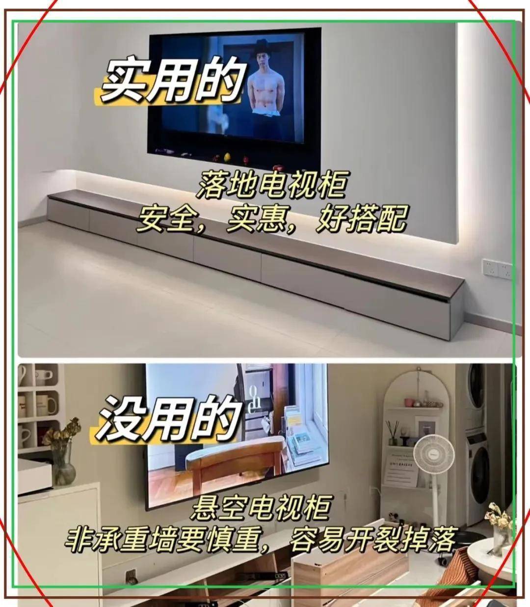 ❌ 鸡肋:悬空电视柜要严慎选拔!非承重墙容易开裂掉落,后期维修防止死,还得费钱加固!