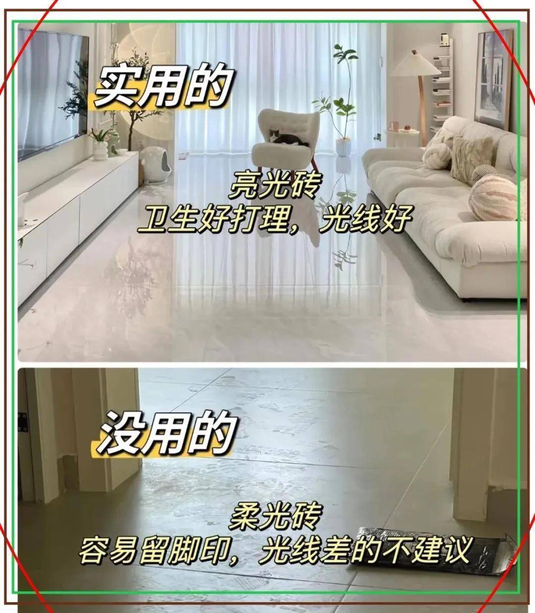 ✔️ 实用:亮光砖yyds!敷衍一抹就干净,水渍脚印皆看不见,采光差的房间能亮10倍。