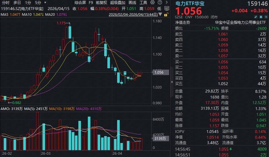 【大摩:电力缺口加重!电力ETF华宝(159146)右侧三连阳,资金暴力抢筹1.46亿份!豫能控股尾盘回封】