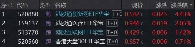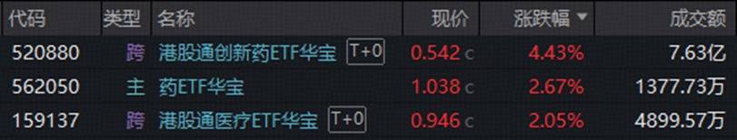 港股创新药彰显高弹性,100%创新药研发标的——港股通创新药ETF(520880)场内价钱劲涨4.43%;港股医疗核心财富——港股通医疗ETF(159137)收涨2.05%放量连阳。