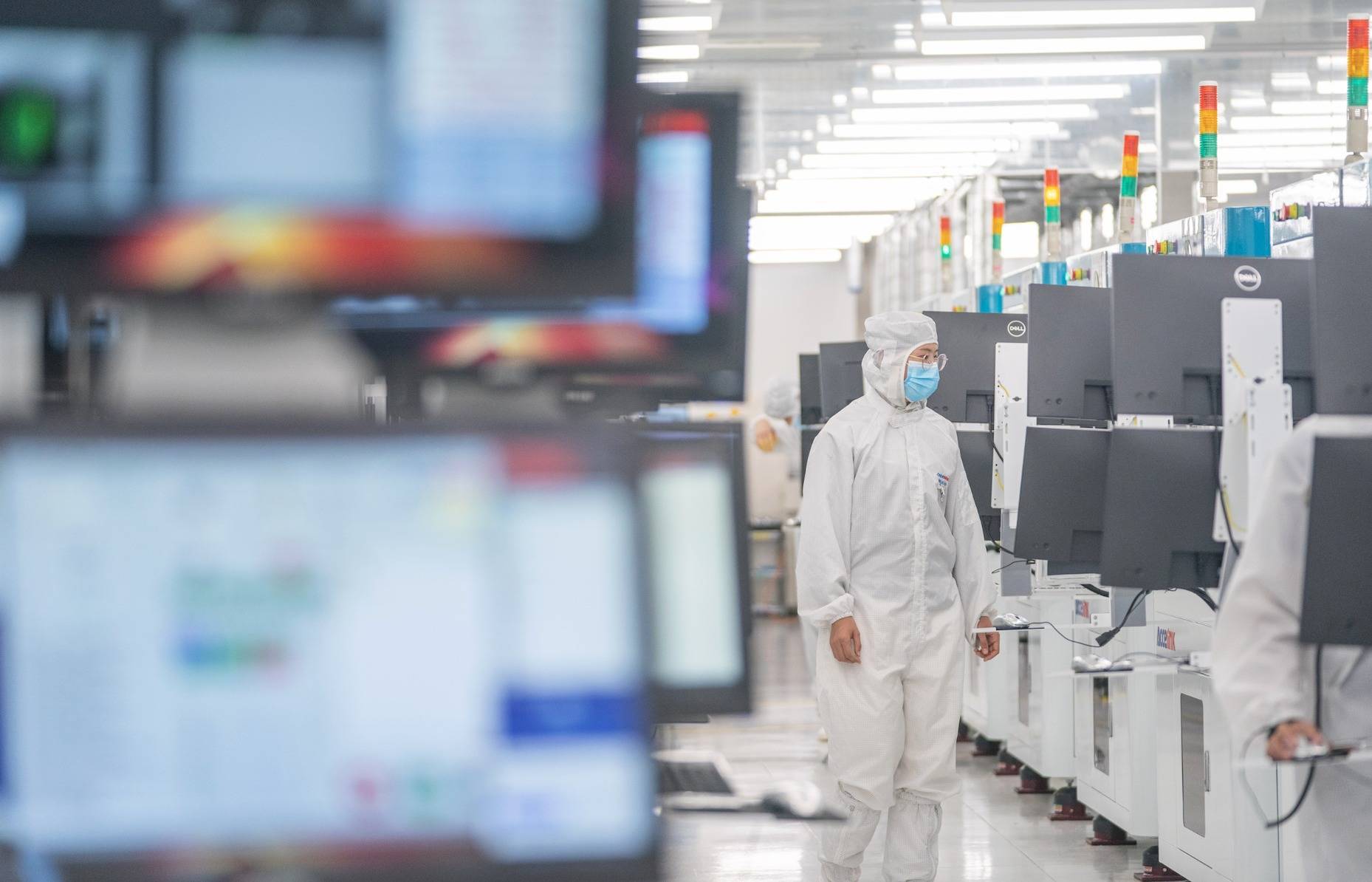 光迅科技全自动高速光模块出产线。(湖北日报全媒记者 魏铼 摄)