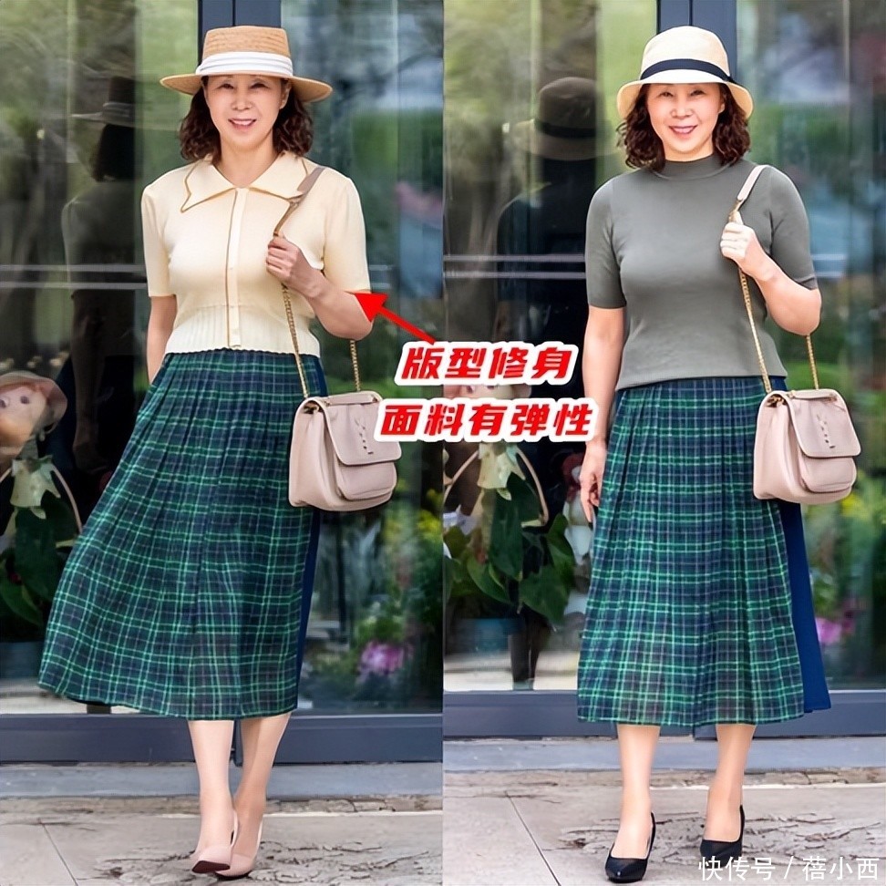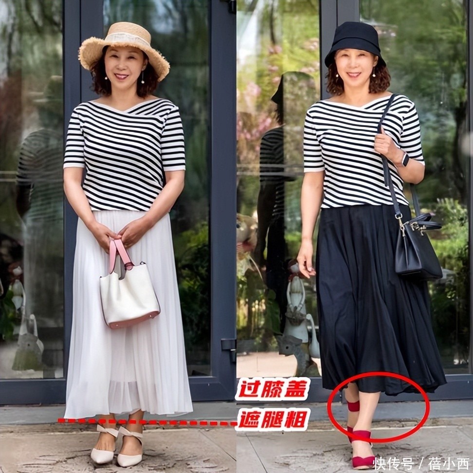 过膝裙完全是中年女性的“救星”,既能遮住腿部舛错,又能拉长体态,穿出优雅气质。