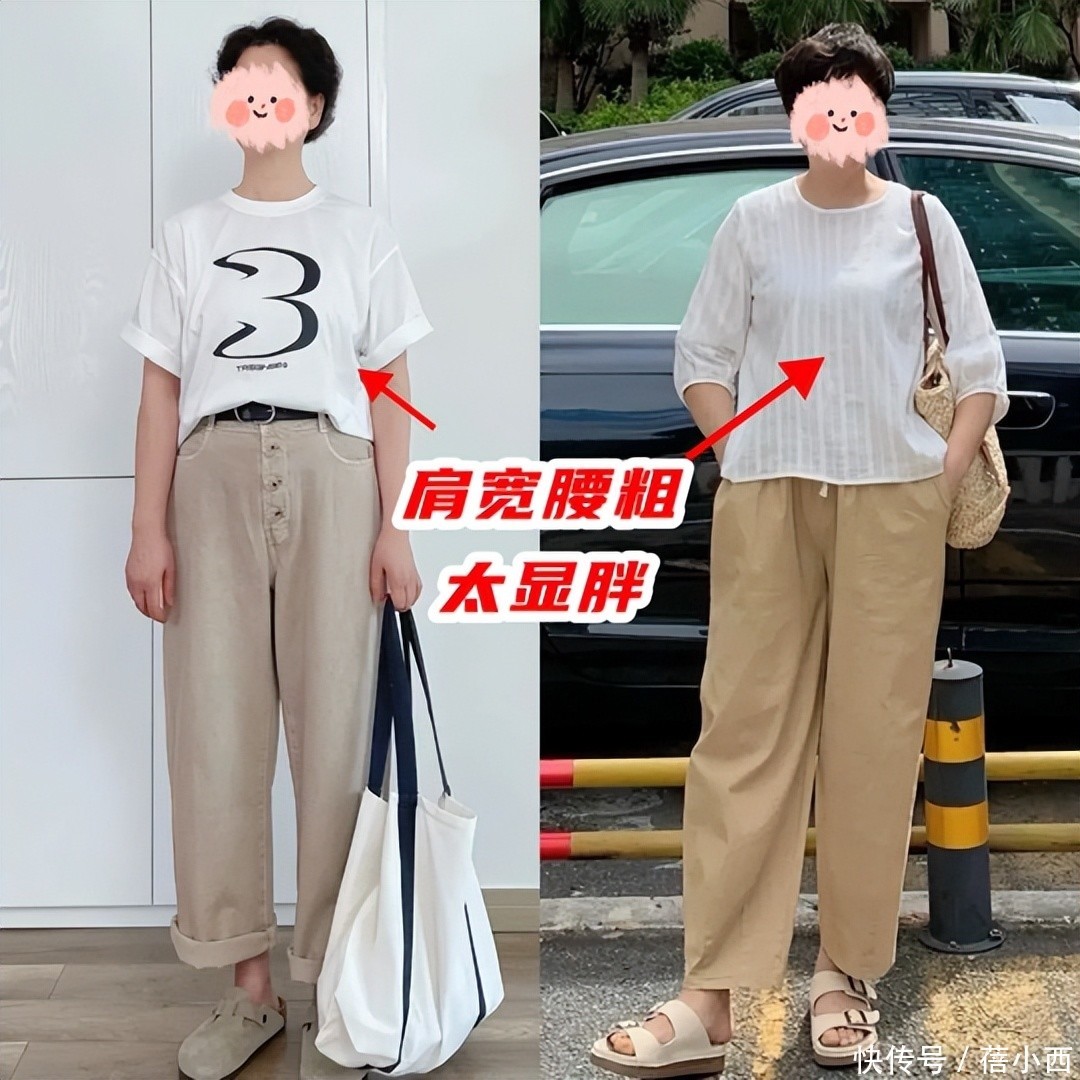 好多东谈主以为T恤欢乐又百搭,可关于上了年岁的女性来说,世俗的圆领T恤反而容易裸露身材短板。尤其是宽松版型的纯棉T恤,松垮的面料容易贴在身上,把腰腹部的赘肉毫无保留地展现出来,所有这个词这个词东谈主显得肥胖又没精神。